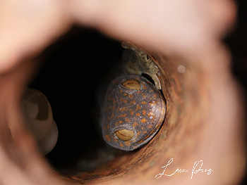 The Tokay gecko is popular terrarium pet all over the world and can also be found in the collection of small zoos all around the world. That is exactly how the species ended up on the island of Curaçao, as part of a zoo terrarium collection of live animals. With a terrarium made out of mesh, the locality did not take into account the possibility of the species breeding and producing offspring small enough to pass through the mesh and escape. This way the species established itself already probably before the year 2016 in the area of Santa Catharina on Curaçao. A viable population of the species in this area was registered and published in 2018. The baby Tokay geckos that originally escaped, had grown up, discovered new habitats in houses, gardens and in the wild, and started breeding successfully. Now the species can be found not only in Santa Catharina but also in the closeby areas of Jan Luis and Koraal Tabak and potentially also in Abrahamz.