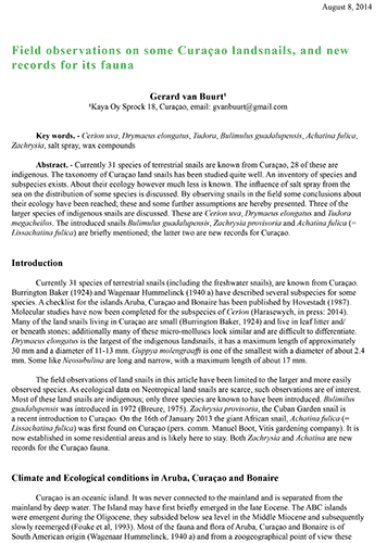 Title/ titel: Field observations on some Curaçao landsnails, and new records for its fauna